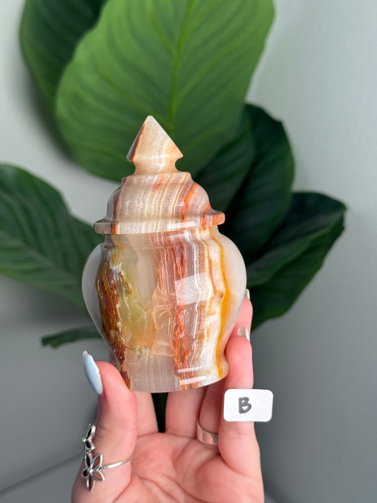 AGATE X AMETHYST STALACTITE HEART ON CUSTOM STAND -URUGUAY- J