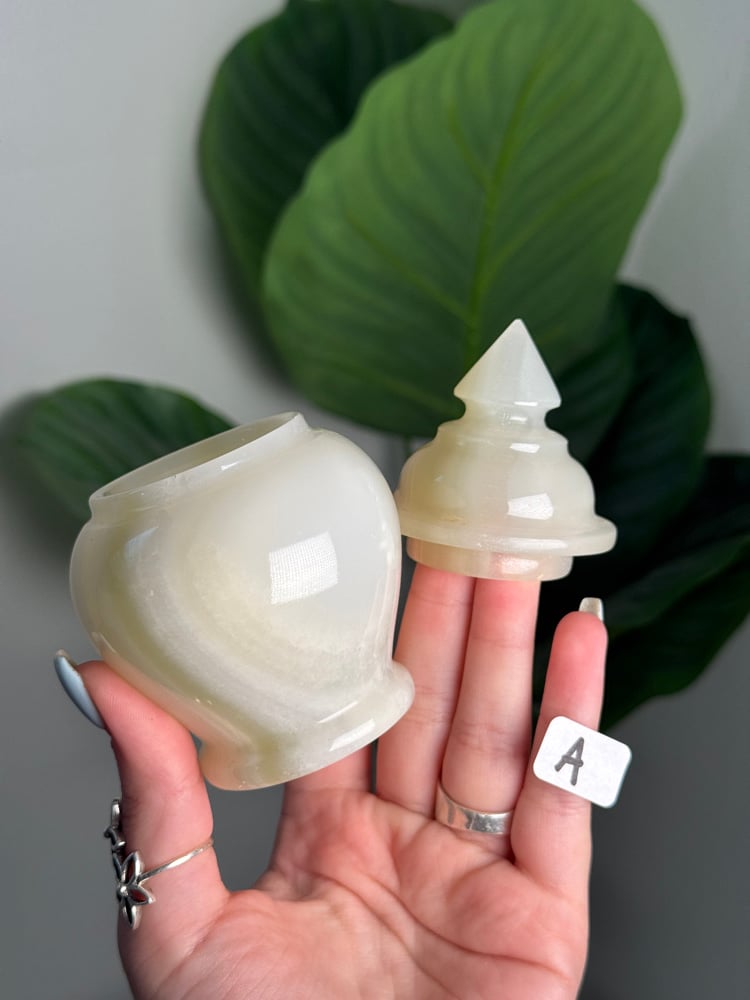 LAVENDER DRUZY QUARTZ EGG WITH RAINBOW FILLED CALCITE POINT ON A STAND -URUGUAY-