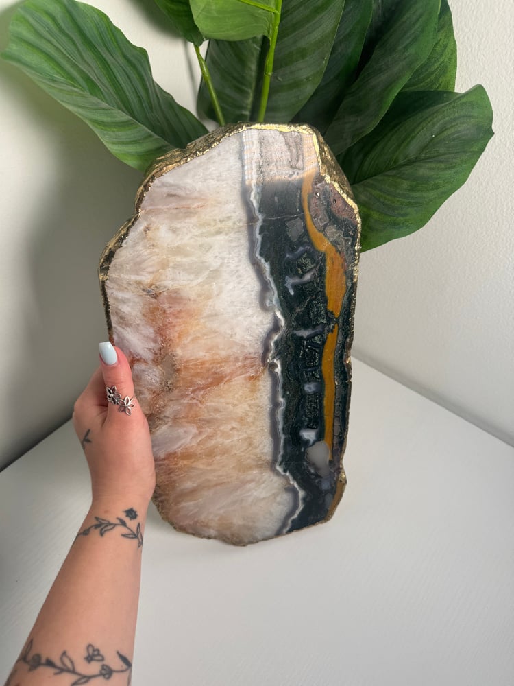 AMETHYST ON A CUSTOM STAND WITH A PERFECT SUGAR COATED CALCITE POINT -URUGUAY-