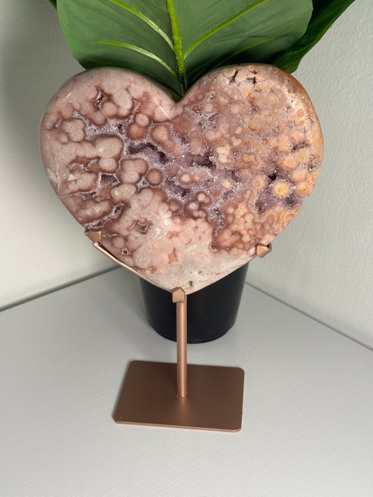 PINK AMETHYST HEART ON CUSTOM ROSE GOLD STAND -BRAZIL-